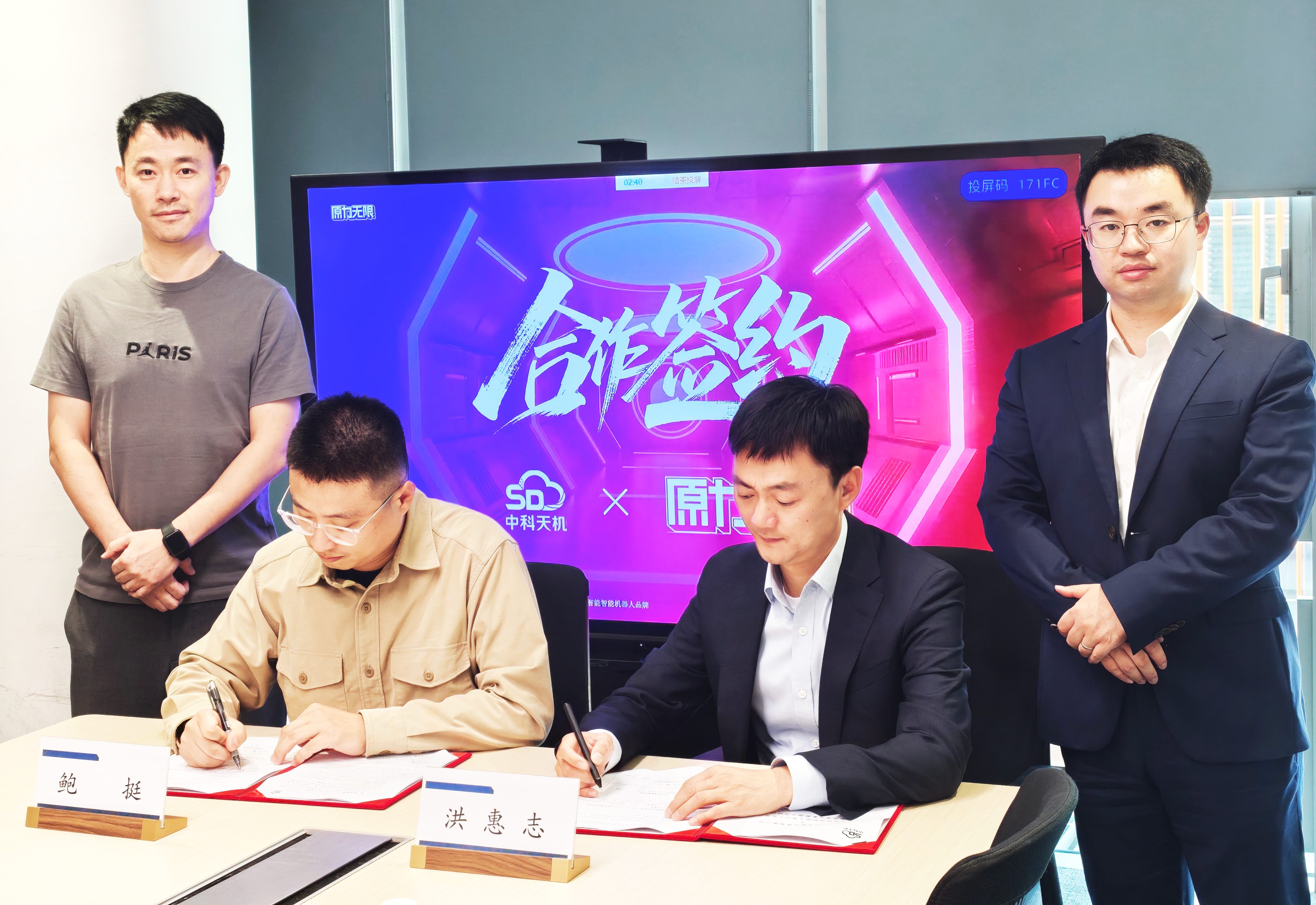(合作签约)中科天机副总经理兼产品与推广部总经理洪惠志(右)、原力光年总经理鲍挺(左)