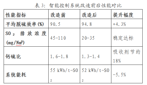 以某300MW燃煤电站脱硫系统改造为例。原系统采用常规DCS控制,钙硫比失调(1.6-1.8,偏离设计值20%以上),脱硫效率波动大(85%-92%),无法稳定达到超低排放要求。